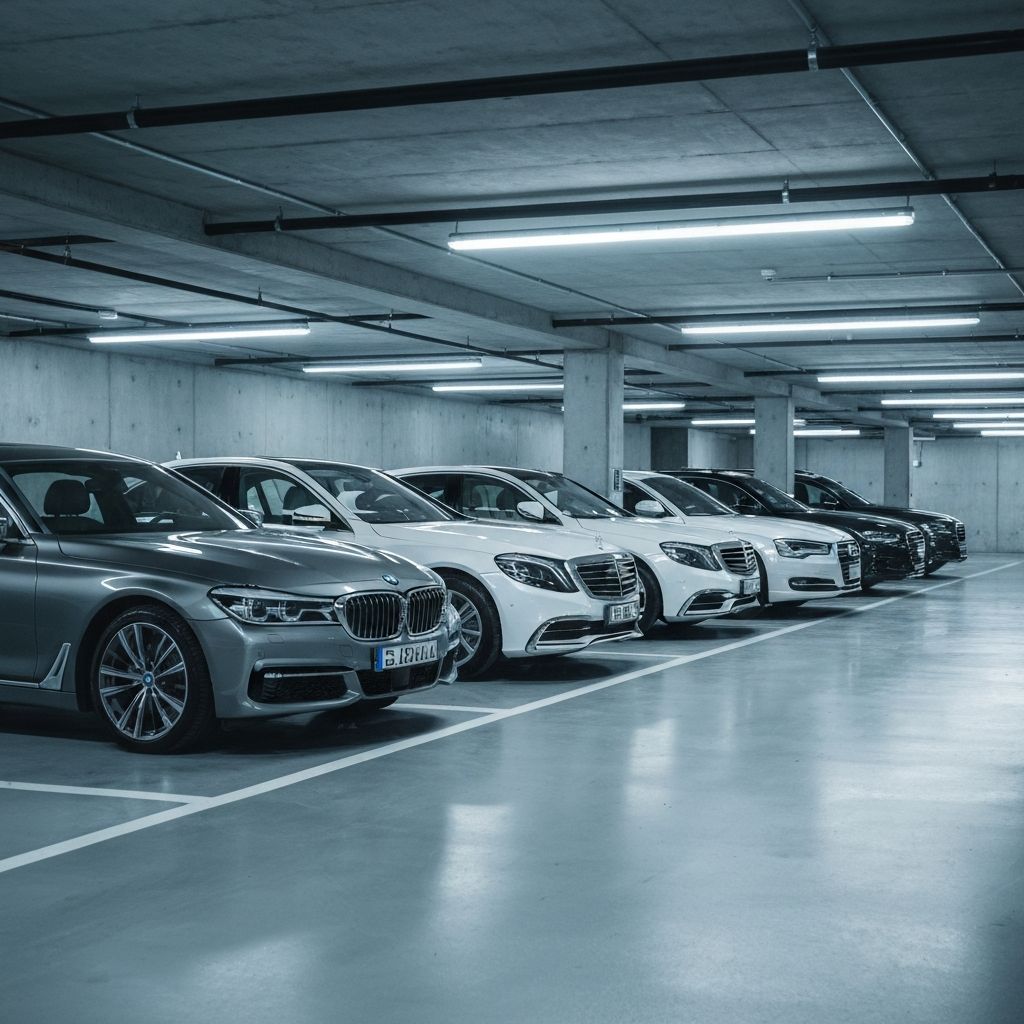 Geschaeftswagen der Mitarbeiter als Benefit direkt auf dem Firmenparkplatz